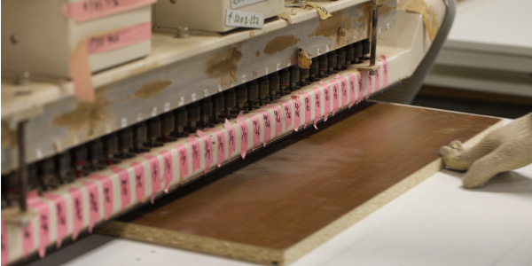 加工後 ダボ穴からダボ穴の寸法が全て32の倍数になっていて、全てのパーツをこのピッチで取り付けることができます。モジュールを統一することによって、家具の設計を合理化。工作機械を単純化し、製作期間を短くすることで低価格を実現しました。さらにシステム化することで、金物やパーツも既製品が使えて、取り換えや修理が簡単にできます。